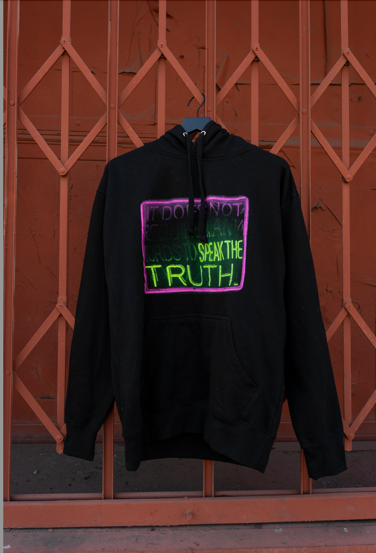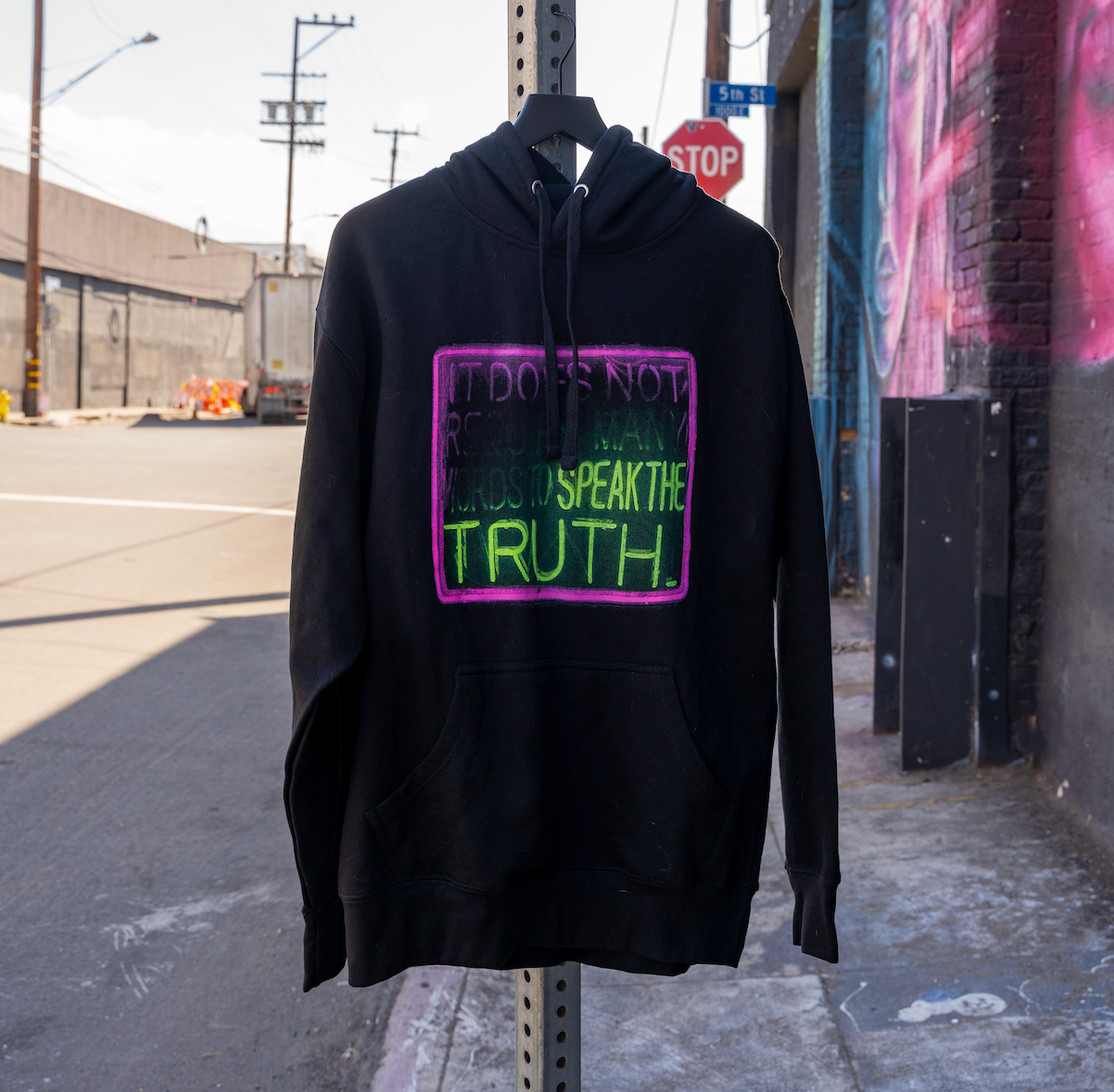 One of L.A.'s most vital artists, Patrick Martinez has created this hoodie to help promote our local journalism. Design reads: "It Does Not Require Many Words To Speak The Truth"